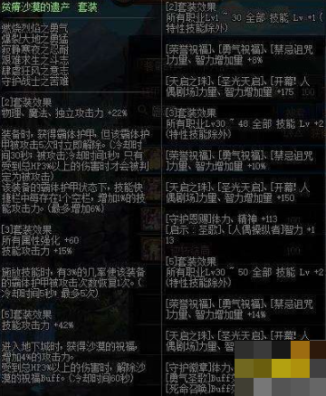 1、具体搭配:贫瘠沙漠的遗产套装+幸运三角套装+军神的隐秘遗产套装。