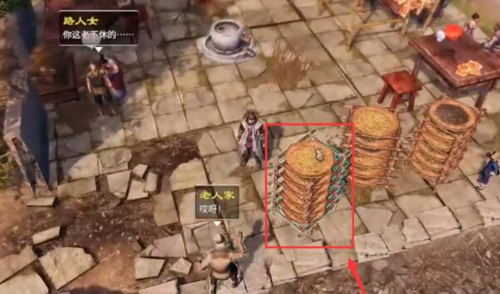 2.在下图药材铺的架子上点火烧蜈蚣,下图的红框中就是架子。