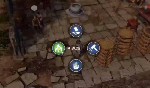 3.鼠标移至架子上点击,出现四个选项,选择『点燃』这个动作。