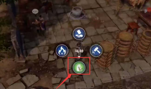 4.火烧结束,再鼠标点击架子,出现四个选项,选择『运劲』这个动作。