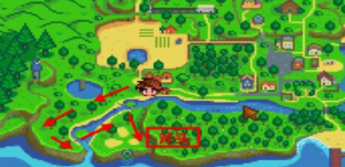 2、位置:自家农场右下侧一点点。 斧头其实是在玛尔妮农场的南边。从自家农场出发往南走(下面的一条路),然后往右一点点有两座小木桥,走过去。