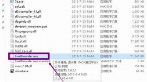 2、进入主程序文件夹, 双击LootHoarder打开平台。