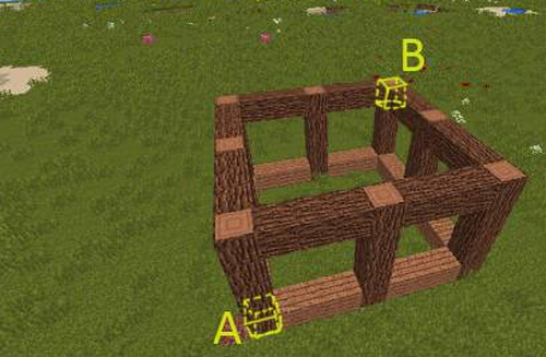 1、记下需要复制的建筑物对角线两端的坐标,如上图A点(坐标Xa Ya Za)和B点(坐标Xb Yb Zb),两个坐标之间的所有方块就是要复制的对象。