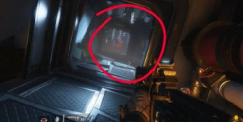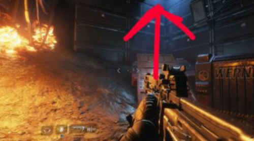 3、沿着通风管前进即可找到有亮光的标识,走过去可以看见1前面燃烧着一团火,第二个电池就位于火的旁边。