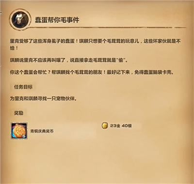 2、接取【蠢蛋帮你毛事件】后,需要寻找两条宠物,跟里克还有逆宗大师麒麟对话;