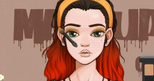 5、最后我们戴假睫毛,涂上腮红和口红,再戴上耳环,取下发带即可过关。