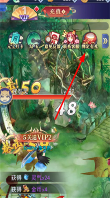 2.然后你需要点击游戏主页面右上角的绑定礼遇。