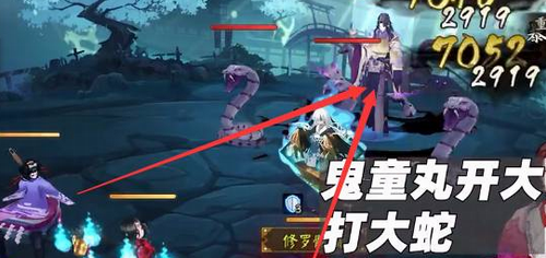 4、鬼童丸开大打第二个蛇魔。座敷点火。