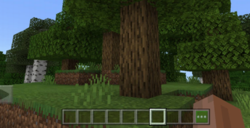 2、我们走到树跟前,操纵人物,对树干进行击碎,在击碎之后就会有掉落木块。