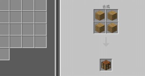 4、在合成木板之后,我们通过相应的方法合成一个工作台。在此标注一下:(工作台是我的世界当中制造工具所不可或缺的一种必需材料,这是刚需,不可以不制作)。