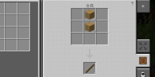 6、在摆放完成工作台之后,我们点击工作台就会出现一个界面。我们用刚才合成所剩下的木板制成木棒。
