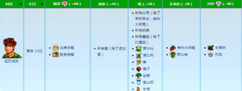 星露谷物语亚历克斯的喜好分享: