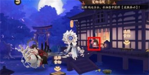 3.阴阳师踏月寻踪人偶第三天位置:先把背景切换成初语谧景庭院皮肤,然后在首页进入宠物小屋,在宠物小屋里点击前往后院,在后院的楼梯间就可以看到神乐人偶了,点击即可。