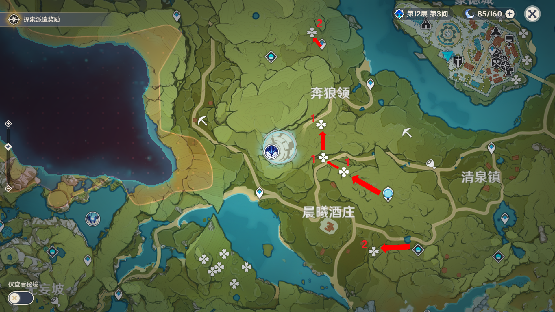 蒙德城算是最容易采集,数量还多的一个地点了,如果是时间不是很充裕的旅行者可以等刷新完后来采集。