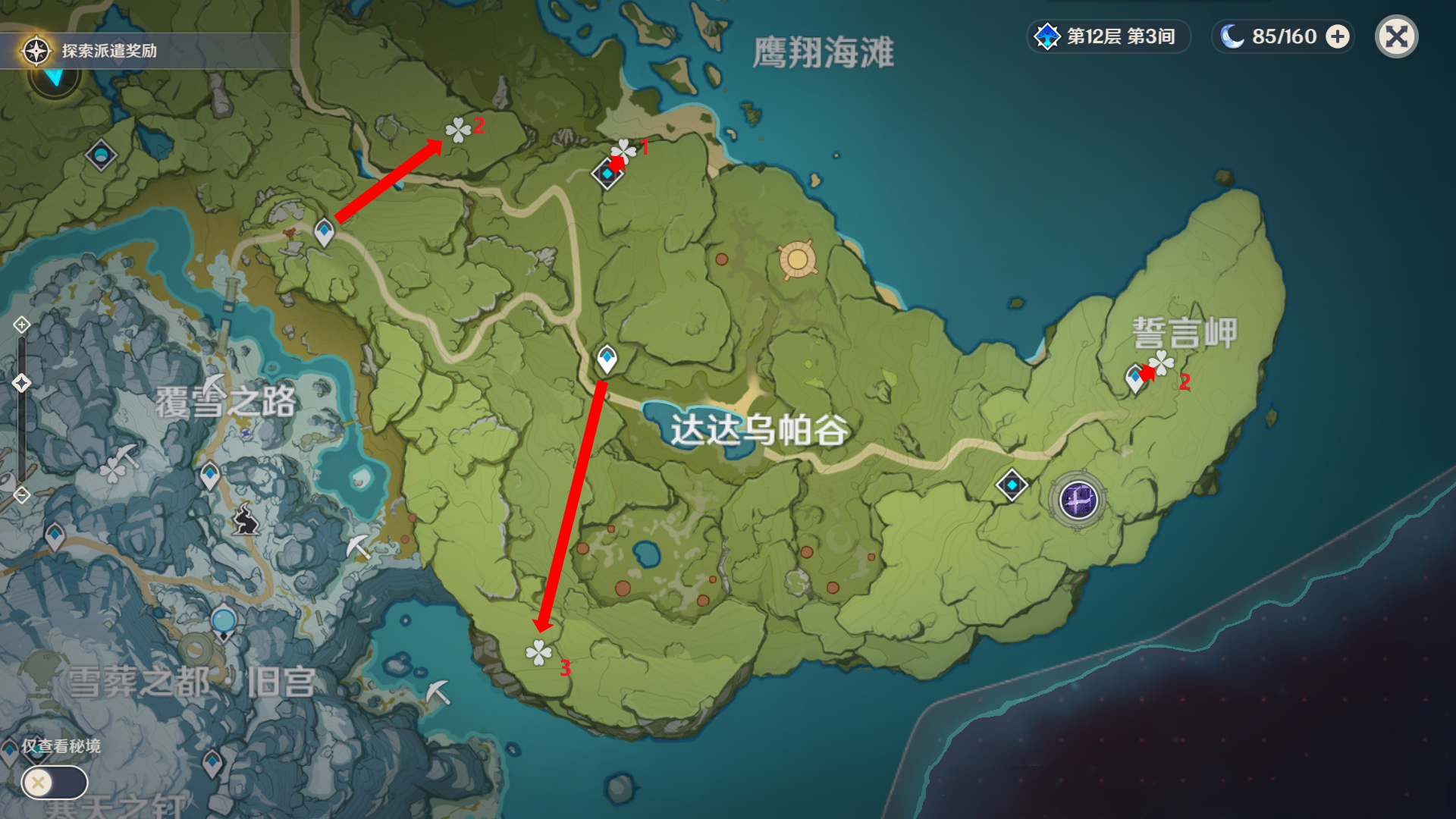 这里其实达达乌帕谷里面还有蒲公英,但是离得太远切较难采集,所以我就标记了这些,如果是时间充裕的旅行者可以搜索米游社的大地图进行观看。