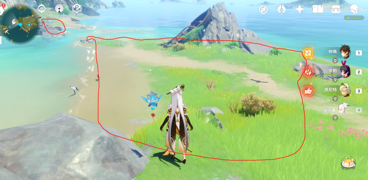 1、无名岛,安柏可飞行,不行就吃个滑行烹饪,顺便将临时传送点定了。