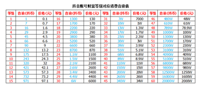 抖音60级需要刷多少钱 抖音1-60级价目表