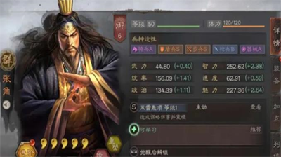 于吉的兵种适性为B,经过仙人属性的加成,等同于S兵种适性。那么于吉的速度调整为张角面板加5点,保证队伍的一速,不用过多加速度。