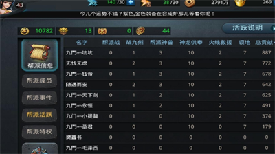 帮派活动:帮派成员可以参与到各种帮派活动中,比如帮派积分赛、帮派任务等。通过参与活动可以增加帮派的积分,从而提升帮派的等级。