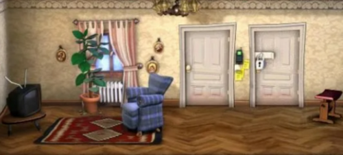 S1-1:从抽屉里得到暖水袋,在浴室挂柜里得到强力胶,在厨房冰箱拿到鸡蛋,把鸡蛋放到微波炉里,胶水涂到右窗口的望远镜上,等DS到厨房里后从楼下绕到客厅,把电视天线大个结,把暖水带放到沙发上。