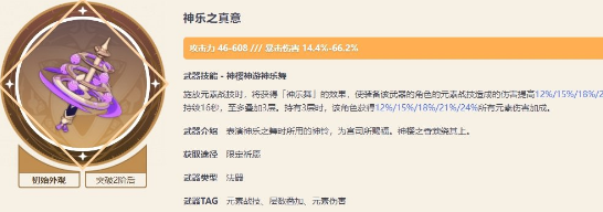 如果想提升八重神子的伤害,这把武器可以选择抽取,但平民请优先考虑精五的流浪乐章,想为可莉提升伤害且没有图莱杜拉的回忆与四风原典的话,也可考虑抽取(为可莉抽神乐的都是真爱党了吧);