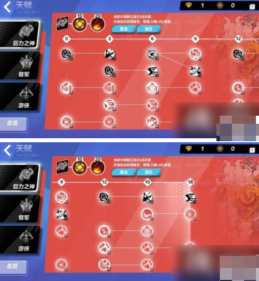 结束剧情54级共58点天赋,巨力之神+督军+游侠