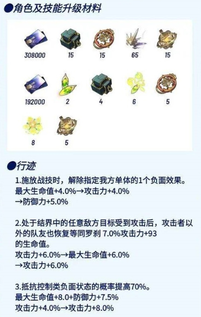 角色/行迹(技能升级)材料需求如下图所示: