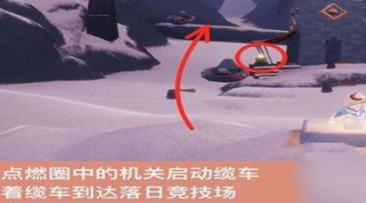 4、点亮房子旁的机关,启动缆车,来到落日竞技场。