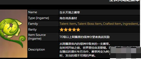 原神生长天地之蕨草可以从70级以上阿佩普的绿洲守望者挑战奖励中获得,就是3.6版本的新BOSS