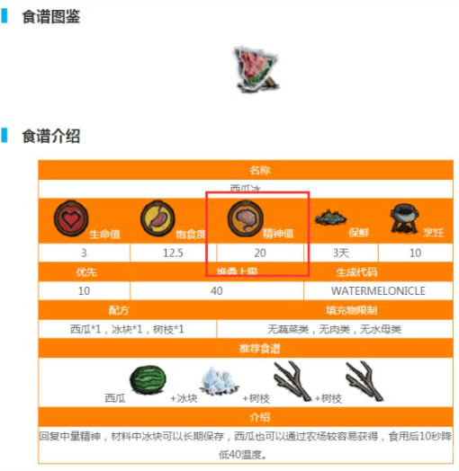 1、西瓜冰:食用可回复饱食度12.5点,血量3点,san值20点。