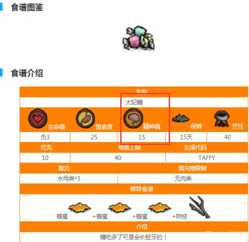 2、太妃糖:食用可回复饱食度25点,血量-3点,san值15点。
