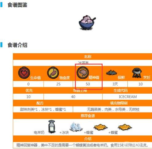 3、冰淇淋:食用可回复饱食度25点,血量0点,san值50点。