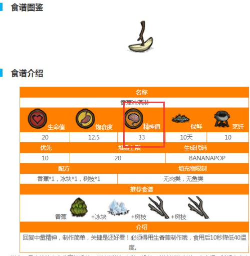 4、香蕉冰:食用可回复饱食度12.5,血量20,san值33点。
