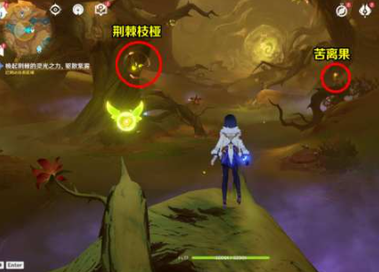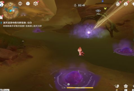 (1)切换成斯露莎,来到「荆棘枝桠」附近点按E,清除紫雾,出现污秽