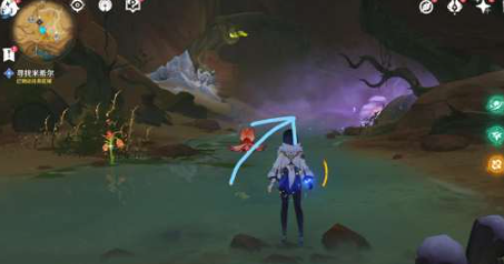 1、前往锋刃林泽寻找米希尔,来到锚点附近西方向,跟随浮游灵光前进