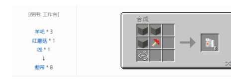 3个羊毛、1个红蘑菇和1根线可以合成8个绷带