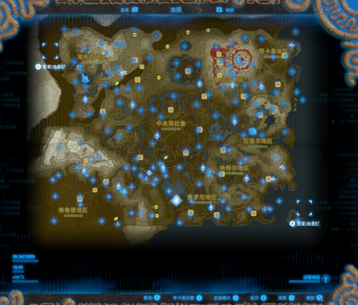 图为本人亲自玩得出,因为游戏机的限制,后期PS出全图,可能是全网最高清的地图,方便下一个玩家快速找到120个神庙,找到后去忘却神殿拿套装奖励,让你的大师剑满血输出。