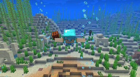 水下呼吸是长期在水下生存最为重要的一个状态,通常《我的世界》玩家会通过给帽子附魔“水下呼吸”或者喝一罐“水下呼吸”的药水。然而到了1.13,“海洋之心”的存在,将会改变这一现状,在距离“海洋之心”100格内,你将具备“水下呼吸”的效果,这一点类似于信标。