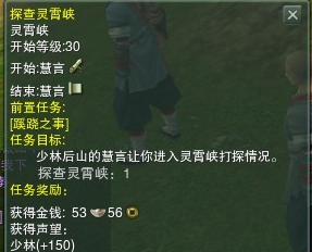 首先,到灵霄峡附近的空地上找到和尚NPC慧言,在哪里可以接到一个任务蹊跷之事让你去附近的神策营地找一捆物件。