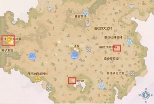 上面就是六个石碑的位置了,大家看一进行参考去寻找,这样可以快速的找到石碑的位置完成任务,同时上下图中都是有具体的坐标和红色的圈圈圈出来的,大家可以保存到手机进行查找。