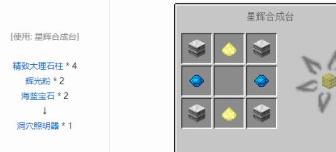 洞穴照明器只能在星辉合成台制作,制作需要4个精致大理石柱、2个辉光粉和2个海蓝宝石
