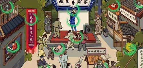 2、关卡中左上角屋子里有花洒,下面的人正在花钱,旁边有一个花花世界的条幅