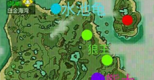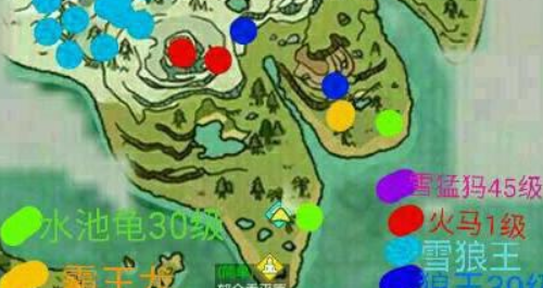 2只狼王(30级可抓),16只雪狼王(抓不了),2只雪猛犸(45级可抓)和2只红马,还有两只水池龟和1只霸王龙。