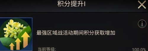 升级后可增加在最强区域活动期间所获取的积分,最高能提升100%的积分收益。