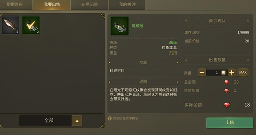 出售方式主要是在商城的我要出售板块,玩家把自己获得的东西卖掉,从而得到红钻收入。比如下图中,玩家通过鱼饵所得到的鱼就可以被出售,一条可以获得18红钻。