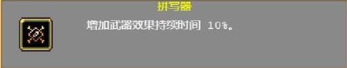 3、拼写器特性:增加武器效果持续时间,可以让书转久一点