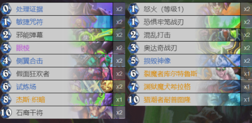 恶魔猎手主要是靠中期用试炼场拉出假面狂欢者和自己的巨型或者石裔干将然后突袭再拉一个大哥出来,想法很美丽,但觉个卡组的问题是,我真的把把准时试炼场,要么硬币5费出要么6费出,关键是好像就算准时也不强啊,费用太高了,我承担了那么多风险,打出这张卡不是我大概率直接赢吗。试炼场如果是4费卡这卡组应该挺强,但6费还是算了。