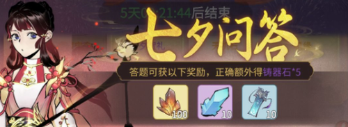 1、七夕问答,玩家可连续五天参与问答获得奖励。
