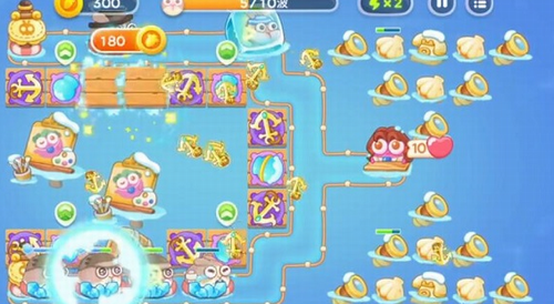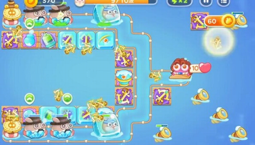 2、然后放置两个雪球炮减速兔子,再放置两个船锚,增加伤害。