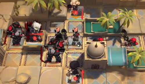1.开局如下图位置部署奥斯塔(向右)→ 古米(向下)→ 蛇屠箱(向上)。